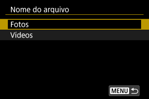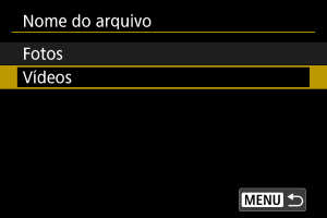 Configurar nomes de ficheiros de vídeo