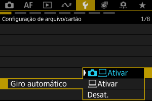 - As imagens captadas com a rotação automática definida para [Desat.] não são rodadas durante a reprodução, mesmo que a rotação automática esteja definida para [