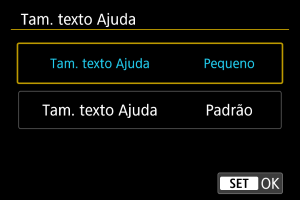 1. Selecione [Configuração: Tam. texto Ajuda] ().
