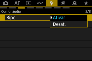 Ativa o sinal sonoro quando em foco e durante o controlo tátil, etc.