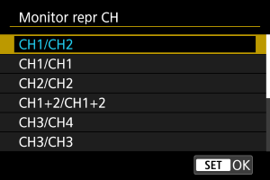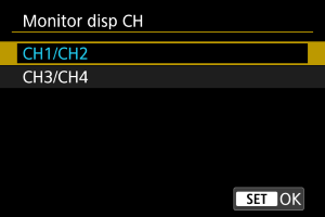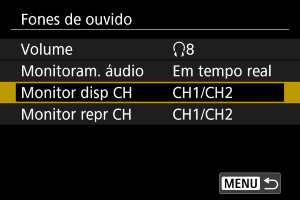 Selecione [Monitor disp CH] ou [Monitor repr CH].