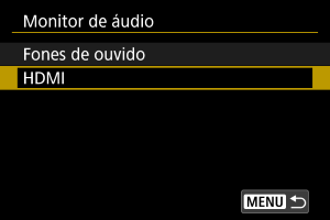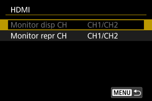 Pode selecionar a combinação de canais para saída a partir da saída HDMI durante o disparo ou reprodução.