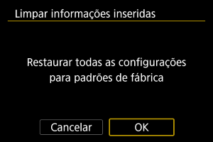Pode repor as palavras-passe e as definições de disparo e as funções de menu para as predefinições.