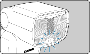 când bliţul Speedlite este un transmiţător la fotografiere cu bliţ wireless cu transmisie radio.