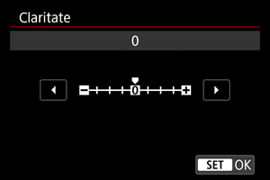 Setaţi către capătul cu valori negative pentru a face imaginea să pară mai soft sau către capătul cu valori pozitive pentru un aspect mai clar.
