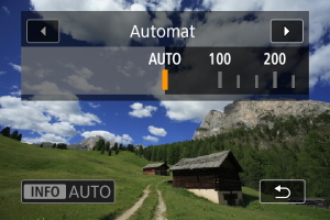 - Dacă selectaţi [AUTO], dacă apăsaţi butonul declanşator până la jumătate va afişa valoarea ISO setată.
