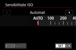 - Selectaţi o valoare ISO, apoi apăsaţi butonul