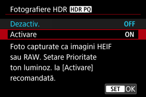 : Ieşire HDR HDMI] la [Activat] (). Ţineţi cont că indiferent de setarea [