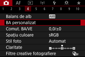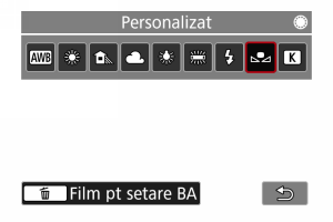 Cu balansul de alb personalizat, puteţi să setaţi manual balansul de alb pentru o anumită sursă de lumină în locul în care fotografiaţi. Efectuaţi această procedură sub sursa de lumină pe care aveţi de gând să o folosiţi.