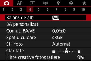 Balansul de alb (BA) este pentru a face ca zonele cu alb să fie albe. În mod normal, setarea Auto [] (Prior med amb) sau [