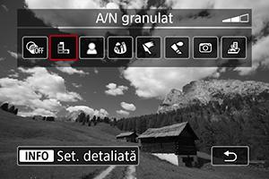 - Cu [A/N granulat], previzualizarea granulată va fi diferită faţă de fotografia finală.
