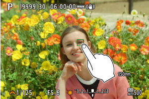• Când setaţi [Declanşator tactil: Activare], punctul AF devine verde când este realizată focalizarea, apoi fotografia este realizată automat.