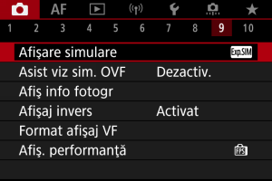 Cu simulare afişare, afişarea pentru luminozitatea imaginii şi profunzimea de câmp se potriveşte mai bine cu luminozitatea (expunerea) cadrelor.