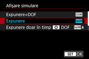 ] apare mai puţin luminos dacă simularea expunerii sau a profunzimii de câmp se opreşte sau dacă se opreşte simularea pentru amândouă.