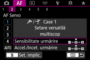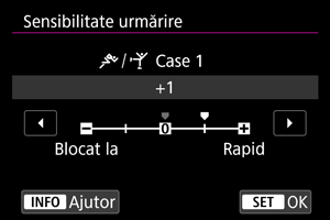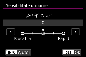 Sensibilitate urmărire şi Accel./încet. urmărire sunt setaţi automat.