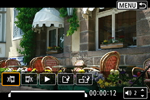 - În ecranul de confirmare, selectaţi [OK], pentru a salva filmul editat şi pentru a reveni apoi la ecranul pentru redarea filmului.