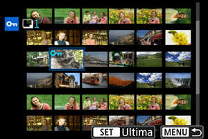 În timp ce priviţi imaginile din afişajul index, puteţi specifica prima şi ultima imagine pentru un interval pentru a proteja toate imaginile specificate.
