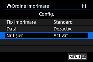 - Setaţi opţiunile pentru [Tip imprimare], [Dată] şi [Nr. fişier].