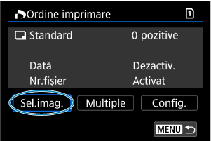 - În continuare, selectaţi [Sel.imag.] sau [Multiple] pentru a specifica imaginile pentru imprimare.