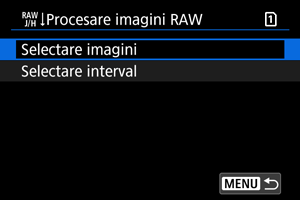- Când folosiţi [Config prelucrare→JPEG] sau [Config prelucrare→HEIF], seletaţi [