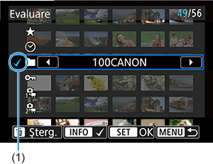 • Dacă selectaţi opţiunea şi apăsaţi butonul INFO, bifa [Verificare] va fi ştearsă (lucru care anulează condiţia de căutare).
