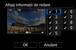 Puteţi specifica ecranele şi informaţiile afişate în timpul redării imaginilor.