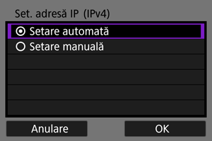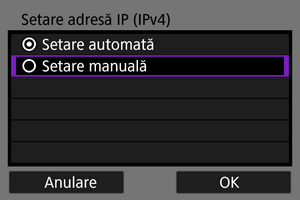 - Dacă apare o eroare cu [Setare autom.], consultaţi Setarea adresei IP manual.