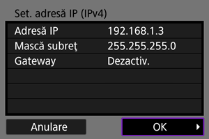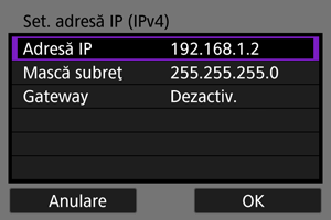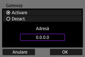 - Pentru a folosi un gateway, selectaţi [Activare], apoi selectaţi [Adresă].