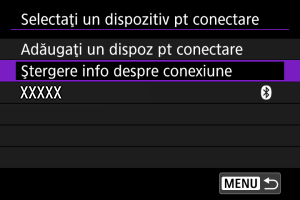 Înainte de cuplarea cu altă telecomandă BR-E1, ştergeţi informaţiile despre telecomanda conectată.