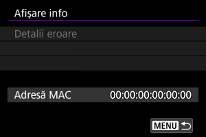 Puteţi verifica detalii despre erori şi adresa MAC a aparatului.
