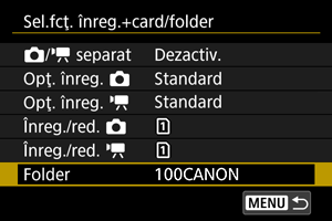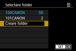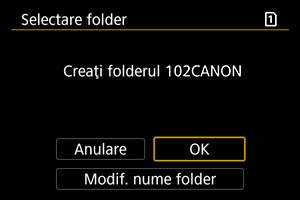 - Directoarele sunt denumite precum “100CANON”, cu un număr de director de trei cifre urmat de cinci litere sau numere. Un director poate conţine până la 9999 imagini (fişierul nr. 0001 - 9999). Atunci când un director se umple, un nou director cu un număr superior cu o unitate va fi creat automat. De asemenea, dacă se efectuează o resetare manuală () un nou director va fi creat automat. Pot fi create directoare cu numere de la 100 la 999.