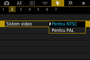 Setaţi sistemul video al televizorului folosit pentru afişare. Această setare determină rata cadrelor disponibile pentru filme.