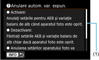 . Apăsaţi din nou pentru a opri afişarea meniului Ajutor. Pentru a derula ecranul când apare o bară de derulare (1) în partea dreaptă, rotiţi