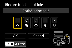 Când este afişat [ Ajutor], puteţi afişa o descriere despre funcţie dacă apăsaţi butonul