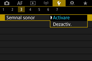 Dezactivează sunetele pentru focalizare, autodeclanşator, obturator şi pentru operarea tactilă.