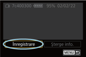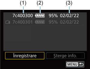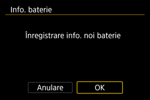 Puteţi înregistra până la şase baterii LP-E6P/LP-E6NH/LP-E6N/LP-E6 în aparat. Pentru a înregistra mai multe baterii în aparat, urmaţi procedura descrisă mai jos pentru fiecare baterie.