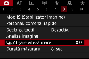 Afişarea rapidă care trece de la fiecare fotografie la imaginea live este disponibilă când fotografiaţi în modul de declanşare [] (fotografiere continuă la viteză mare) şi cu un alt mod pentru obturator decât cel electronic.