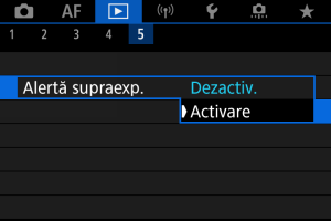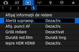 Puteţi specifica dacă să clipească afişajul în zonele supraexpuse pe ecranul de redare. Pentru a obţine mai multe detalii în imagini în zonele care clipesc unde doriţi să fie reprodusă mai bine gradaţia, setaţi compensarea expunerii la o valoare negativă şi înregistraţi din nou pentru un rezultat mai bun.