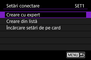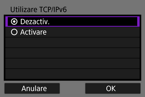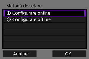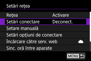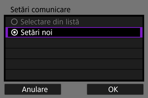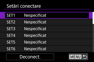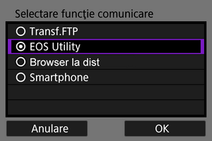 Pentru detalii despre următoarele operaţiuni, consultaţi Configurarea setărilor pentru conexiunea EOS Utility.