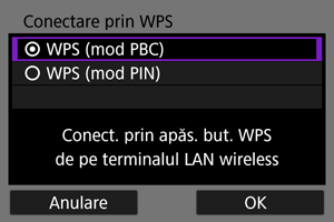 Această secţiune descrie cum să vă pregătiţi pentru operaţiunile pe aparat în EOS Utility prin conectarea aparatului şi a calculatorului prin Wi-Fi folosind un punct de acces compatibil WPS (mod PBC).