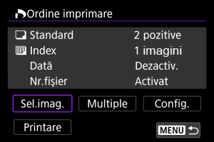- Pentru procedurile de setare a imprimării, consultaţi Comandă imprimare (DPOF).