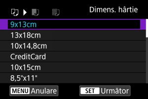 - Selectaţi dimensiunea hârtiei încărcată în imprimantă.