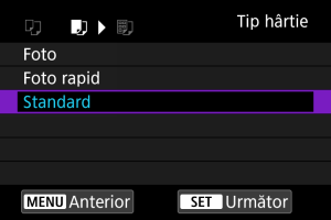 - Selectaţi tipul hârtiei încărcată în imprimantă.