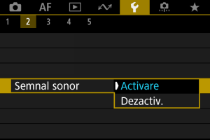 Dezactivează sunetele pentru focalizare, autodeclanşator, obturator şi pentru operarea tactilă.