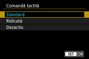 - Pentru a dezactiva operaţiunile tactile, selectaţi [Dezactivare].