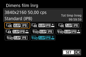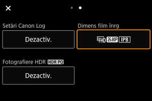 Ca la fotografiere, apăsaţi butonul pentru a accesa ecranul de Comandă rapidă. Fiecare apăsare a butonului
