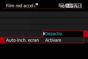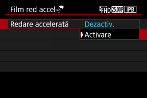 - Pentru a anula înregistrarea filmului cu redare accelerată, setaţi [Redare accelerată] la [Dezactivare].
