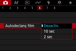 ], aparatul afişează numărul de secunde până la începerea filmării şi emite un sunet.