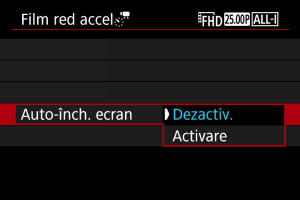 - Pentru a anula înregistrarea filmului cu redare accelerată, setaţi [Redare accelerată] la [Dezactivare].