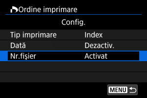 - Setaţi opţiunile pentru [Tip imprimare], [Dată] şi [Nr. fişier].